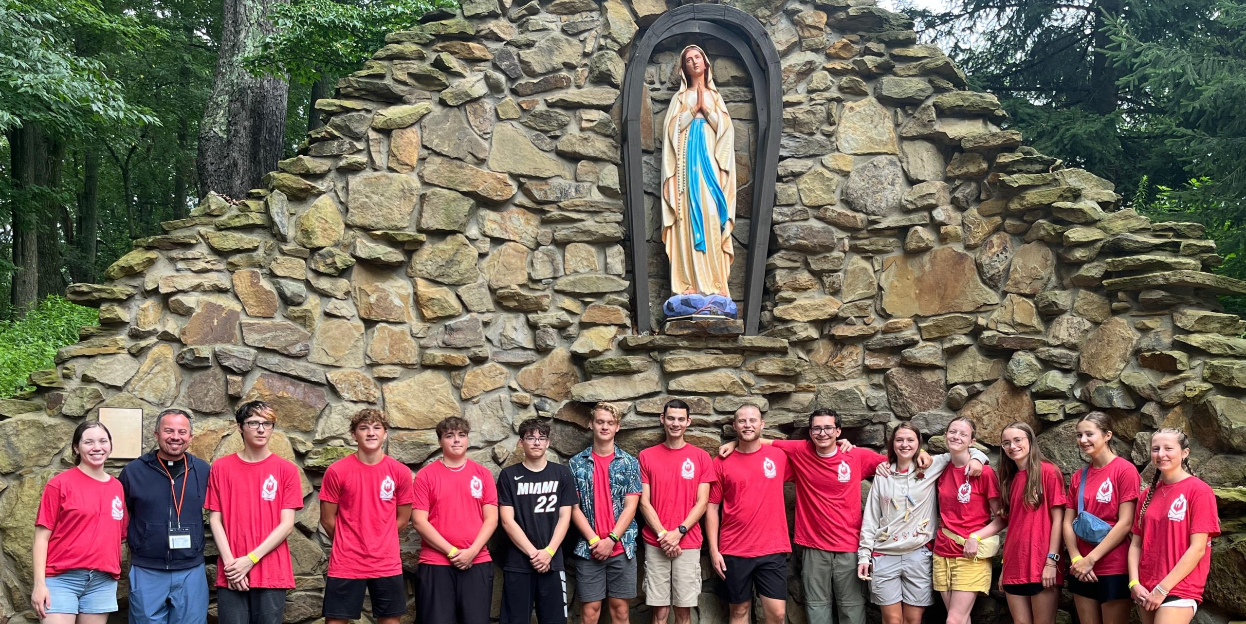 Youth Group is for high school students and meets on Sunday evenings from 7:00-8:30 pm in the Memorare Center. Youth from any school and from any faith are welcome. Youth ministry uses catechesis, service, worship, and socials to bring teens into a relationship with Jesus and his Church. There are opportunities for retreats, conferences, and field trips throughout the year. Our fall kick off will be on September 21st. We ask that you register your teen, but there is no deadline to do so. Teens may join at any time!